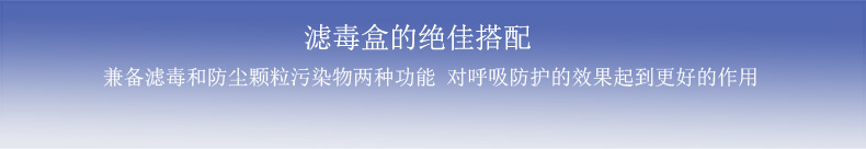 產(chǎn)品特點(diǎn):搭配金盾濾毒盒使用,用于防護(hù)粉塵,煙,霧,微生物等顆粒污染物,過(guò)過(guò)濾95%以上的顆粒污染物。